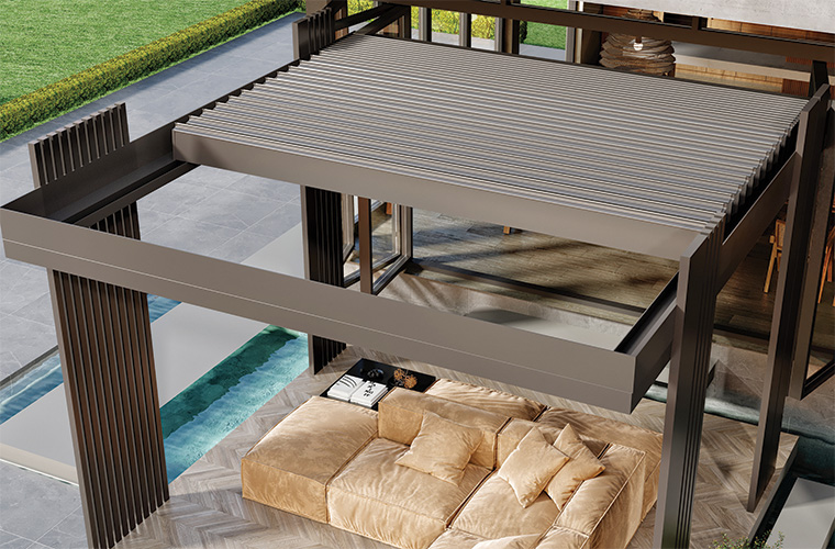Matek Grup Crown, alüminyum/cam/ayna panelli, motorlu bir biyoklimatik pergoladır. Özel patentli tasarımı ve yüksek kalitesiyle, yaşam alanınızı istediğiniz koşullarda, 4 mevsim boyunca maksimum seviyede kullanabilme olanağı sağlamaktadır. Standart modüller, özelleştirilebilir: yerleri, kalınlıkları ve renkleri değiştirilebilir ve yaşam alanınıza maksimum konfor ve kullanılabilirlik kazandırmak için, farklı mimari çözümler oluşturulabilir. Pergola üzerindeki panellerin aralıkları, uzaktan kumandayla ayarlanabilir ya da istenen noktaya kadar açılıp kapatılabilir. Matek Grup Crown, monteli ya da bağımsız şekilde kullanılabilmektedir. Alüminyum panellerin içerisine yerleştirilmiş olan özel poliüretan yalıtım malzemesiyle, eşsiz bir ısı ve ses yalıtımı sağlar. Ayrıca Crown’un yağmur suyunu tahliye etmek ve pergola alanının kuru tutmak için tasarlanmış gizli bir drenaj sistemi bulunmaktadır.