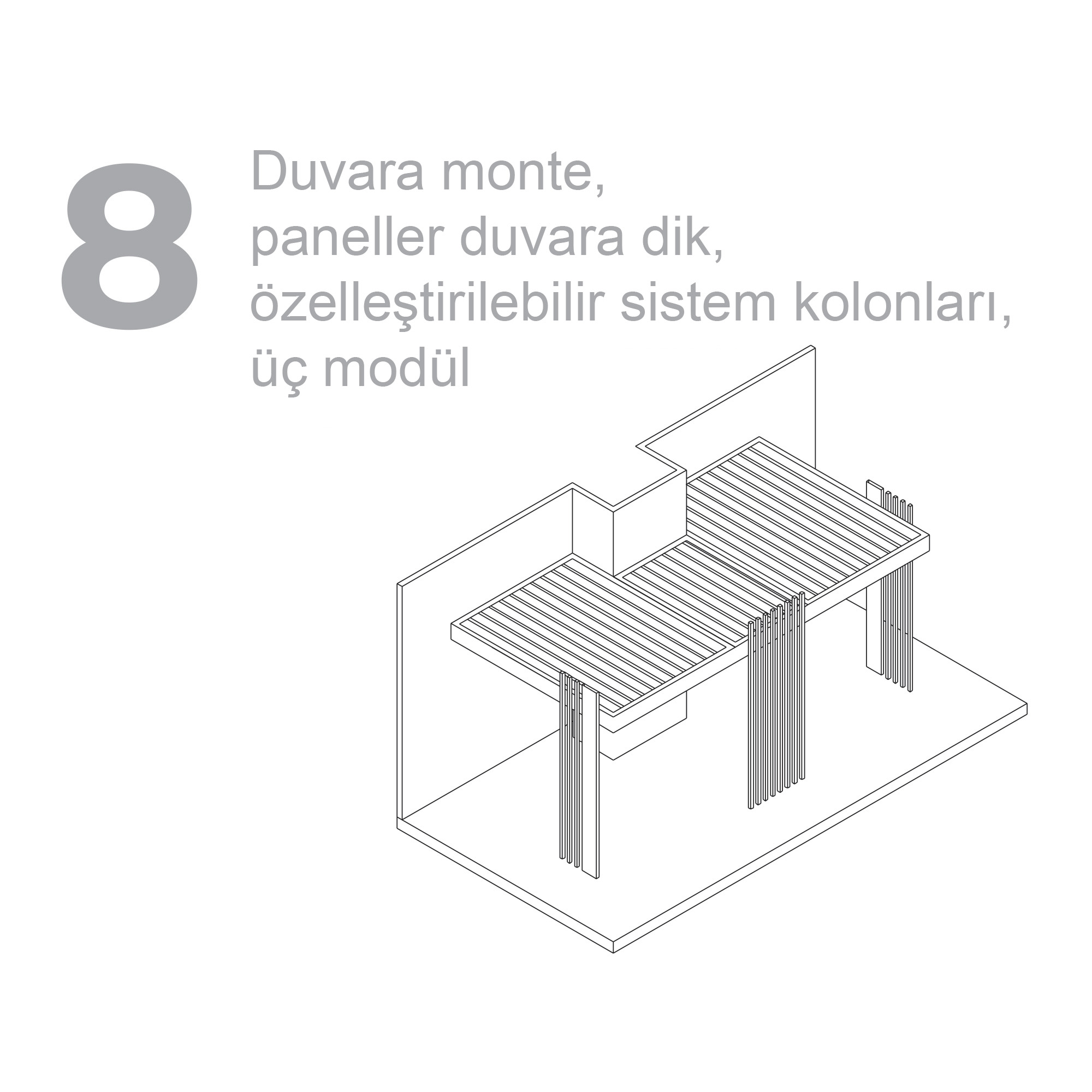 Crown tamamen farklı bir tasarım deneyimi sunmaktadır. Standart modüller özelleştirilebilir; yerleri, kalınlıkları ve renkleri değiştirilebilir ve alanla uyumlu, farklı mimari çözümler oluşturulabilir.